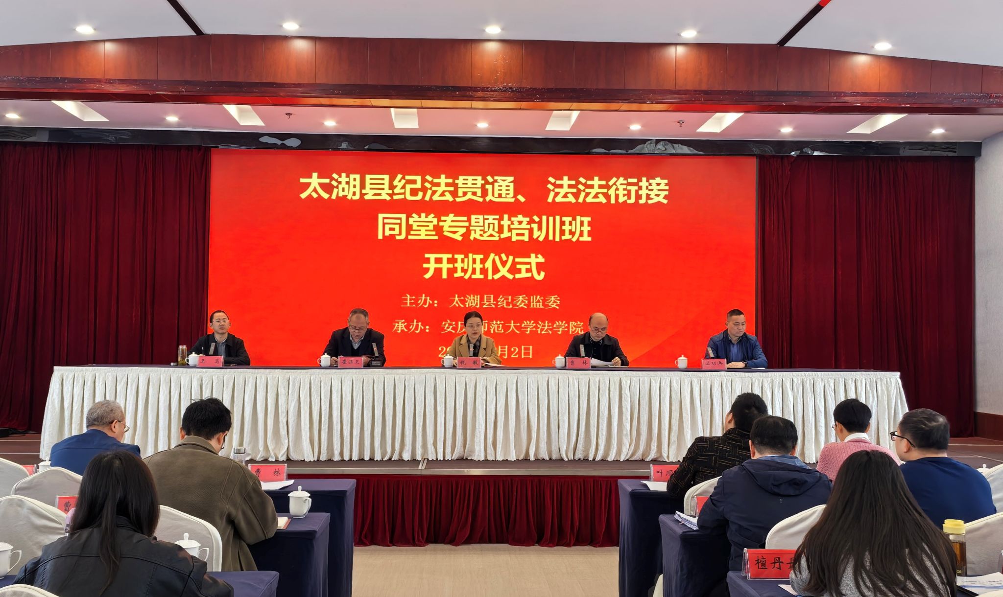 4月2日至3日,由明升官网 承办的太湖县纪法贯通、法法衔接同堂专题培训班在安庆顺利举行。明升官网 党委书记钱敏,太湖县委纪委副书记、监委副主任曹林,明升官网 院长崔汪卫、党委副书记卫功兵,安庆市纪委监委第六纪检监察室副主任王嵩出席开班仪式,太湖县纪检监察系统和司法系统共60余名干部参加培训。