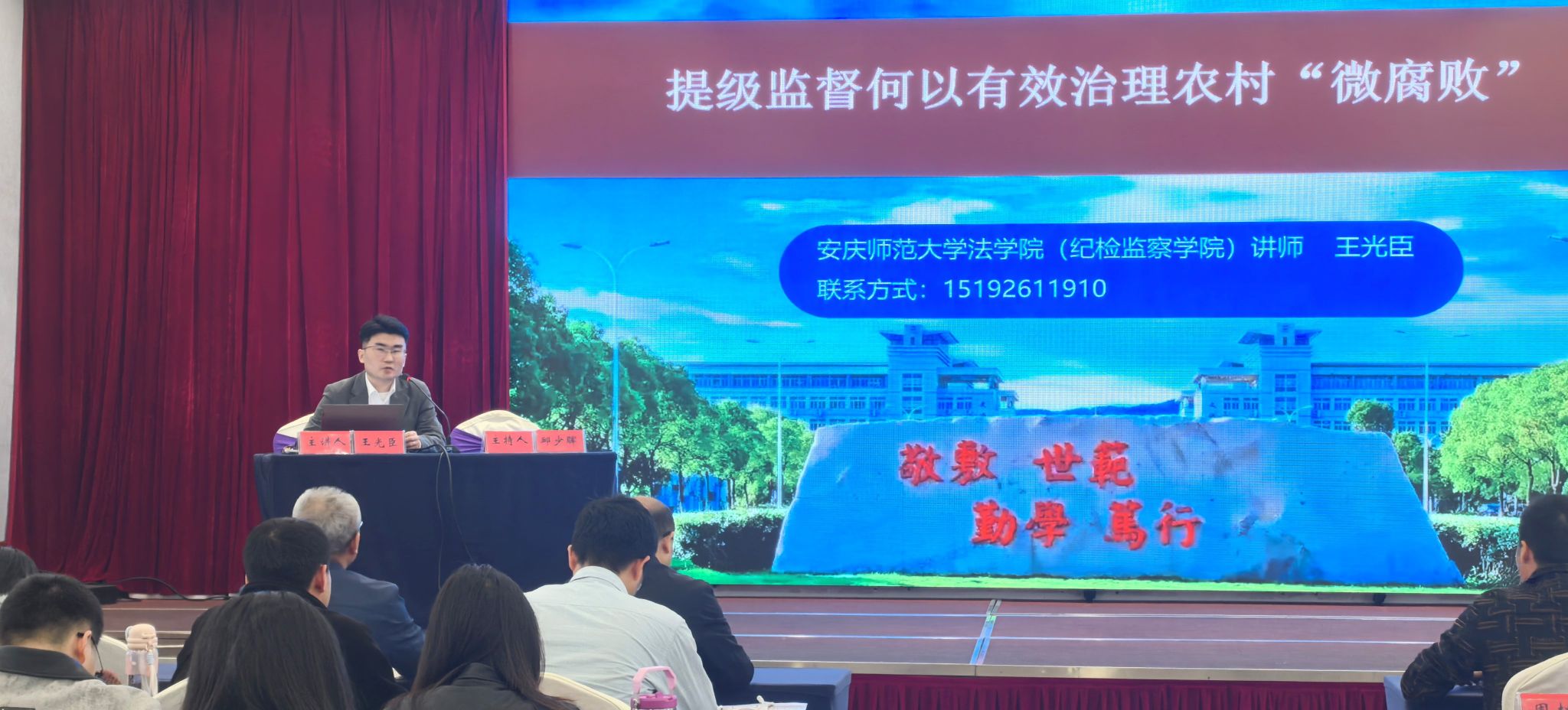 培训为期两天,课程设置紧密结合新时代纪检监察工作实际,围绕“纪法协同——职务违纪与违法犯罪的界限”“审查调查谈话的方法与技巧”“常见违纪违法行为定性”“大数据背景下的精细化初核”“提级监督何以有效治理农村‘微腐败’”等方面,邀请了苏州大学国家监察研究院院长、刑事法研究中心主任、王健明升官网 教授李晓明,安庆市纪委监委第八纪检监察室主任曹友春,安庆市纪委监委第六纪检监察室副主任王嵩,宿松县纪委常委、监委委员唐全龙,明升官网 讲师王光臣博士等专家学者开展系统授课培训。
