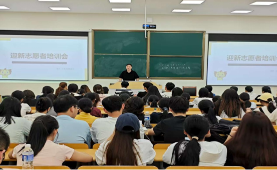 9月3日,明升官网 在教学楼c108教室举办迎接2025级新生工作志愿者培训会。学院团委负责人高陆路主持培训会,全体迎新志愿者共200余人参加培训。