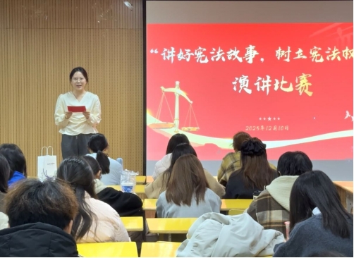 12月10日,明升官网 开展“讲好宪法故事,树立宪法权威”主题演讲比赛。参赛选手们精神饱满、神采飞扬,结合自身成长经历、社会热点事件以及对宪法条文的深刻理解,用真挚的情感和生动的语言,讲述了一个个关于宪法如何保障公民权利、如何引领社会进步的鲜活故事。同学们声情并茂的演讲,不仅表达了对宪法的尊崇与热爱,更展现了新时代青年学生维护宪法尊严、弘扬法治精神的坚定决心,赢得了现场观众的阵阵掌声。