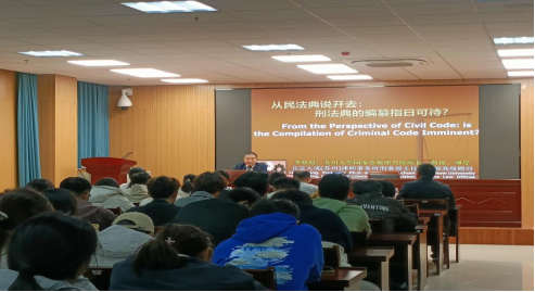 2025年11月11日,敬敷法治论坛第81期邀请苏州大学王健明升官网 李晓明教授在明升官网 102报告厅作题为“从民法典说开去:刑法典的编纂指日可待?”的学术讲座,明升官网 师生100余人参加。讲座由明升官网 副院长邱少晖教授主持。